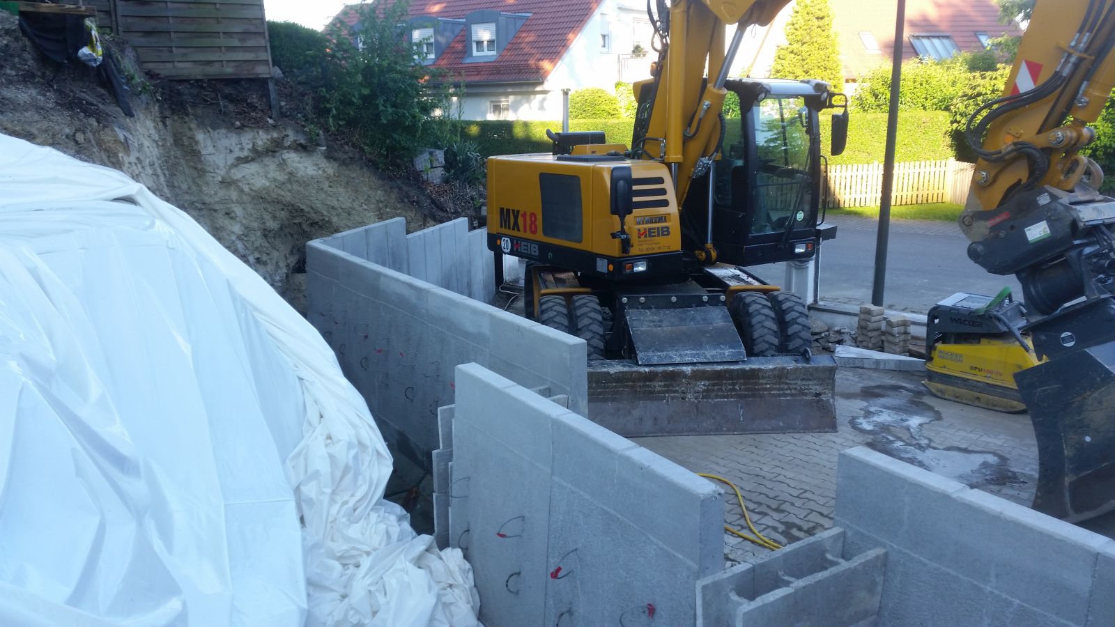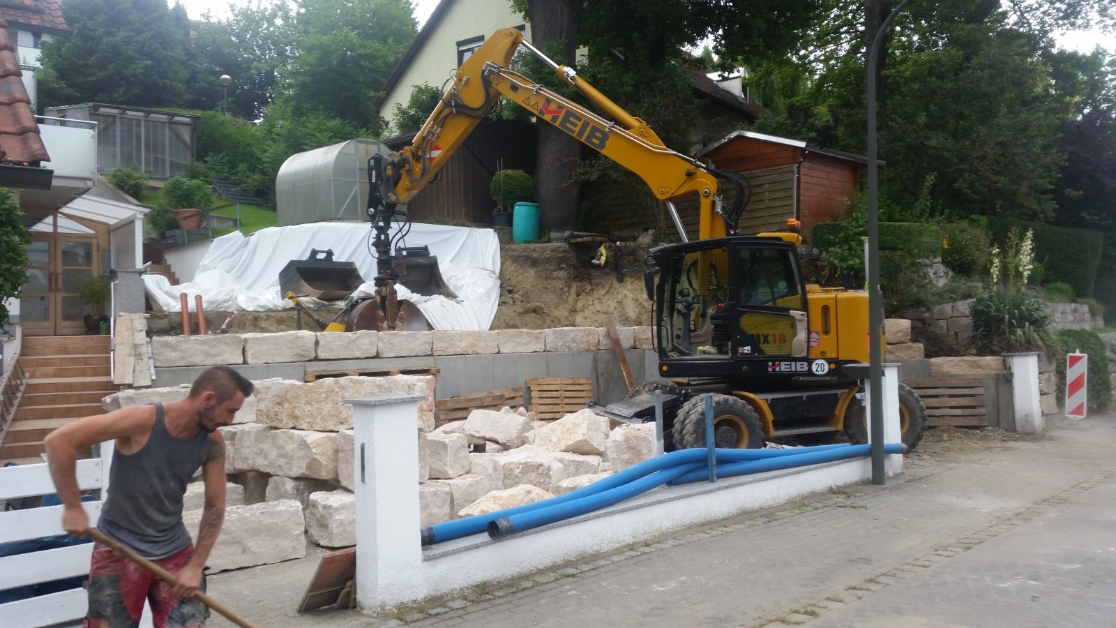 Begonnen wurde mit dem Abriss und der Entsorgung der alten Bahnschwellen. Anschließend wurden zur Hangsicherung L-Steine gesetzt.